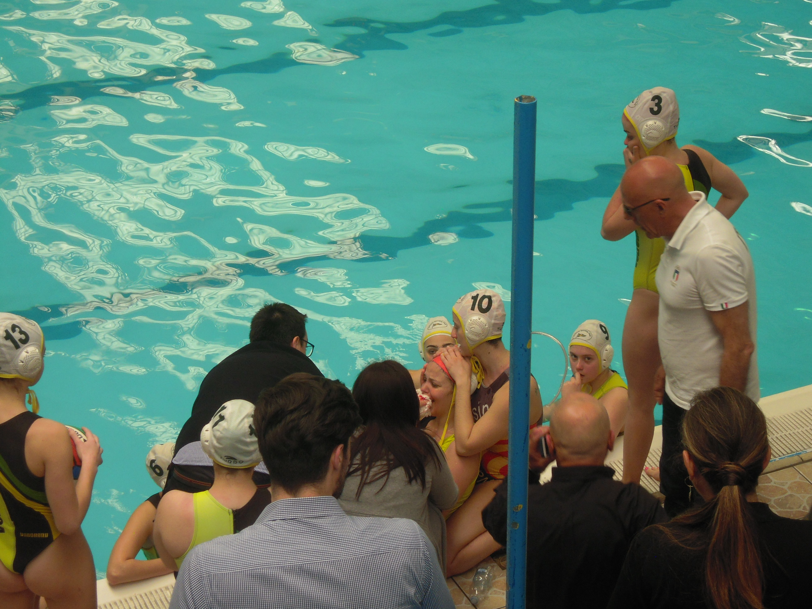 Il Volturno conquista il primo pallone, poi il minuto di raccoglimento per la morte di Michele Scarponi. De Magistris porta in vantaggio le ospiti, raggiunte poco dopo da Starace in superiorità. La stessa De Magistris si inventa un gioco di prestigio rapidissimo che beffa il portiere gialloverde. La Mastrantoni poi si rifà con gli interessi salvando un gol già fatto. Nella seconda frazione Iavarone in controfuga fa 3-1. Fatone accorcia con un diagonale in power play, prima del rigore per fallo di Mastrantoni su Mazzola. Migliaccio segna dai 5mt per il 4-2 ospite. Dopo un salvataggio sulla linea per il Volturno arriva il rigore messo a segno da Starace. La gara si infiamma ed Acampora in superiorità trova un gol con caparbietà (3-5). Pellegrino accorcia con “l’uomo in più’ per il 4-5. Occasione sciupata nel Volturno nel finale di quarto con proteste per il mancato azionamento del cronometro negli ultimi 5 secondi da parte di coach Damiani. Nel terzo periodo arriva subito il pari di Rajkort a 7’39” alla fine della superiorità che durava dal primo tempo. A 7’07” l’incidente di gioco e i 3 minuti per la medicazione, che si è protratto per la gravità della situazione. Al rientro in vasca gol per la giovane slovacca Baranovicova a griffare il 5-6 ospite. Poco più di un minuto dopo la sospensione dell’incontro. Si attende la stesura del verbale dell’arbitro per sapere quale sarà l’esito di questa decisione.