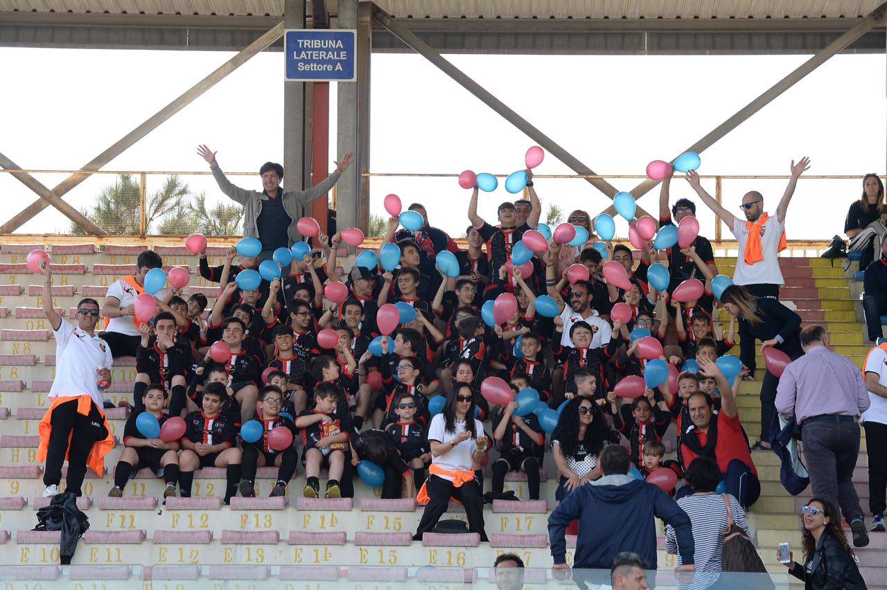 Grazie alla disponibilità della dirigenza rossoblù, a cominciare dal pres. D’Agostino, un centinaio di atleti della scuola calcio casertana, dalla leva 2002 fino ai piccoli amici 2012, hanno assistito alla gara e colorato gli spalti di rossoblù sventolando festanti ininterrottamente palloncini.