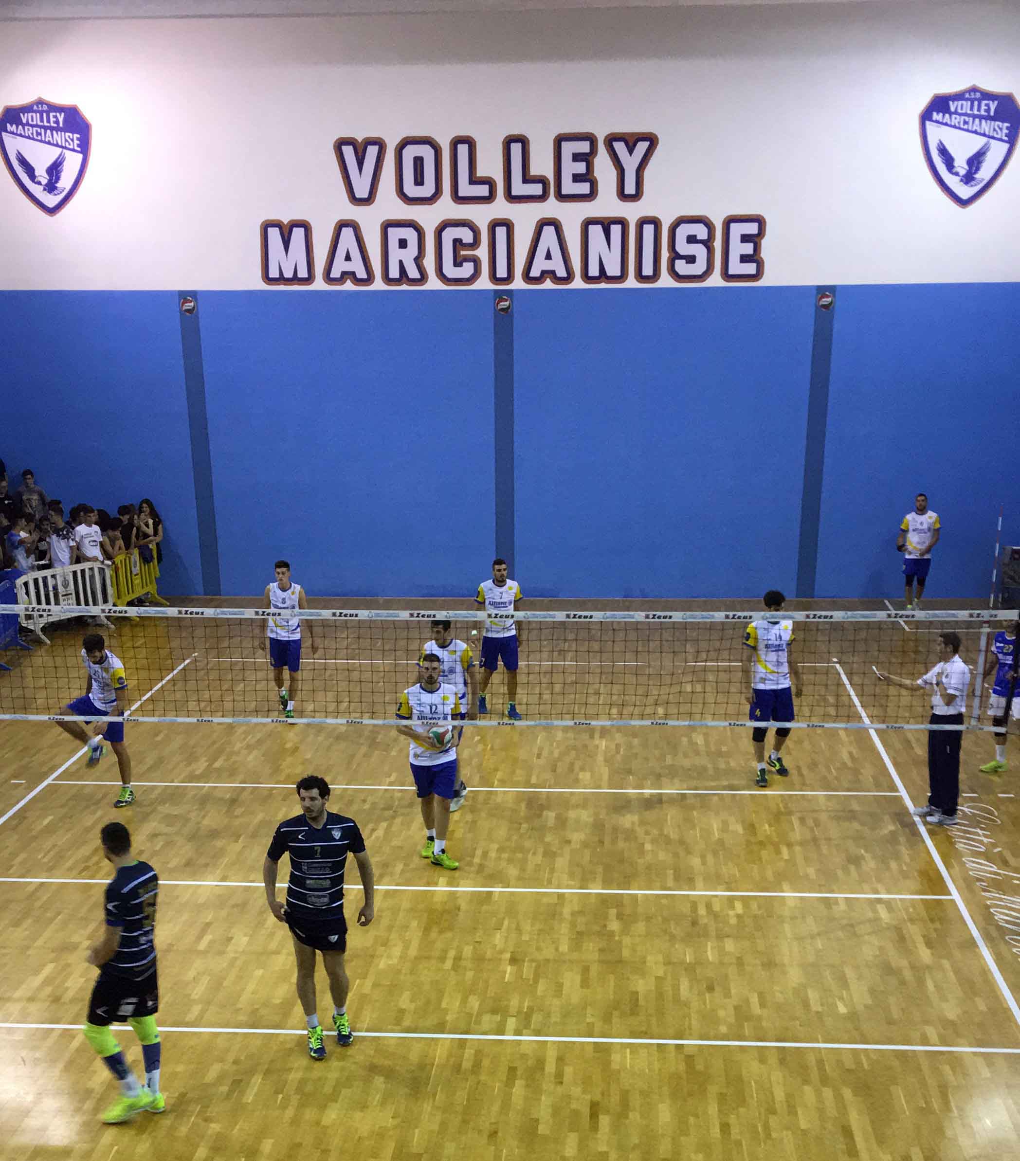 Vittoria importante per il Volley Marcianise che supera 3-1 il Rione Terra in gara uno della semifinale playoff. Successo che consente ai marcianisani di fare un passo verso la finale. Si parte ed è subito 3-0. I flegrei si organizzano e prima pareggiano poi mettono la freccia (6-7). Saccone segna il 15-13. Con De Luca ‘mura’ l’attacco avversario (20-16) ma il Rione Terra si rifà sotto e impatta a 20. Poi 20-21 ma break di 5-2 per il 25-22 finale. Nel secondo Marcianise accumula anche sei punti di vantaggio (10-4) però la voglia di rivalsa di Montò e soci non li fa mollare. Ancora il Marcianise avanti (19-15) con Saccone ma poi sul 21-21 il Rione mette la freccia e chiude 23-25. Grande equilibrio nel terzo (9-9) con i padroni di casa avanti al primo timeout tecnico (12-11). Di Salvatore scrive il 22-18 che è la spallata decisiva. Al terzo set (25-18) siamo 2-1 ed è la svolta. I puteolani crollano mentalmente (12-5 e 14-5 in un amen). Commettono errori banali e vanno sotto anche di otto lunghezze. Sul 21-14 si capisce che la vittoria è vicina e infatti termina 25-14 per la grande festa degli oltre cinquecento tifosi tra cui anche il Sindaco Velardi sempre più tifoso della pallavolo marcianisana. Di seguito le interviste al presidente Pasquale Siciliano e all’mvp Saccone