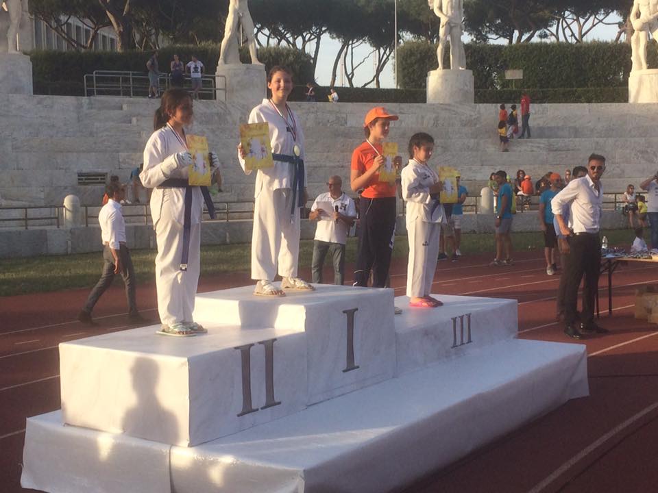 Nella spettacolare cornice dello Stadio dei Marmi ‘Pietro Mennea’ di Roma si è svolta l’edizione 2017 del Torneo Internazionale “Kim & Liù” di Taekwondo. L’evento organizzato dalla Federazione Italiana di Taekwondo può essere considerato un vero e proprio campionato italiano di combattimento riservato agli atleti più piccoli, ovvero i nati dal 2006 al 2011. Sotto un caldo torrido hanno preso parte alla competizione oltre 2000 atleti da tutta Italia che si sono sfidati a suoni di calci e pugni sotto gli occhi attenti dei maestri, dei genitori, del mitico Maestro Park Young Ghil, pioniere del Taekwondo Italiano e del Presidente Angelo Cito, nonché di numerosi ospiti, dall’ex presidente Coni Pescante alla campionessa paraolimpica Bebe Vio. Con 16 atleti in gara, era presente anche quest’anno l’Asd Athletic Lab – Team Renga. Bisognava difendere il titolo italiano con la giovane, ma ormai veterana in termini di medaglia, Gaia Gazzillo. Per lei è arrivato il bis, trionfando nei 3 combattimenti che l’hanno portata alla medaglia nella categoria -45 kg cinture verdi/blu. E subito dopo è arrivato il raddoppio, ad opera di Aldo Nuzzo, nella categoria – 53 kg cinture verdi/blu, che ha gestito e dominato anche lui i suoi 3 combattimenti. Si sono fermati in semifinale, conquistando comunque il bronzo, Aldo Nerone nella – 41kg bianche/gialle e Flavia Papirio nella -49 kg verdi/blu, entrambi alla prima esperienza nel Kim&Liù, autori di due ottime prove il primo disputando 3 altissimi combattimenti e la seconda dominando il primo ma perdendo in semifinale contro un’avversaria molto più alta di lei. L’ultima medaglia arriva dal più piccolo degli atleti in gara, Francesco D’Itollo classe 2011, che nella categoria – 17 kg cinture bianche/gialle conquista un ottimo bronzo e i complimenti del due volte medaglia olimpica Mauro Sarmiento. Ad un passo dalla medaglia Michele d’Aiello, nella – 45 verdi/blu, autore di di due vittorie ma sfortunato nel sorteggio incontrando ai quarti il trionfatore delle categoria. Hanno fatto parte della spedizione Rosa Celestino, cintura bianca, pochi mesi di palestra, che nel primo combattimento ha dominato una cintura mezza verde, fermandosi però al combattimento successivo; Vincenzo Valentino, Vincenzo Zimbardi, Francesco Procino, Antonio d’Itollo, Giacomo Ventrone, Giuseppe Affinito, Christian Nerone, Pasquale Tirino e Salvatore Di Giorgi. Lo staf tecnico della spedizione era composto dal direttore tecnico Maestro Aniello Renga (per la sede di Santa Maria a Vico, Fonzie Body Club) e dagli insegnanti tecnici Pierluigi Renga (Maddaloni – All Fit), Antonio Traviso (Cervino – Animal Power) coadiuvati dal coach Raffaele Grieco. Alla spedizione ha preso parte un nutrito gruppo di genitori che, sfidando il caldo torrido di Roma, ha supportato senza sosta ognuno degli atleti in gara. Due giorni di Taekwondo, due giorni di Athletic Lab – Team Renga, due giorni per crescere tutti insieme: Maestri, Atleti e Famiglie. Athletic Lab quando lo Sport diventa stile di vita!!