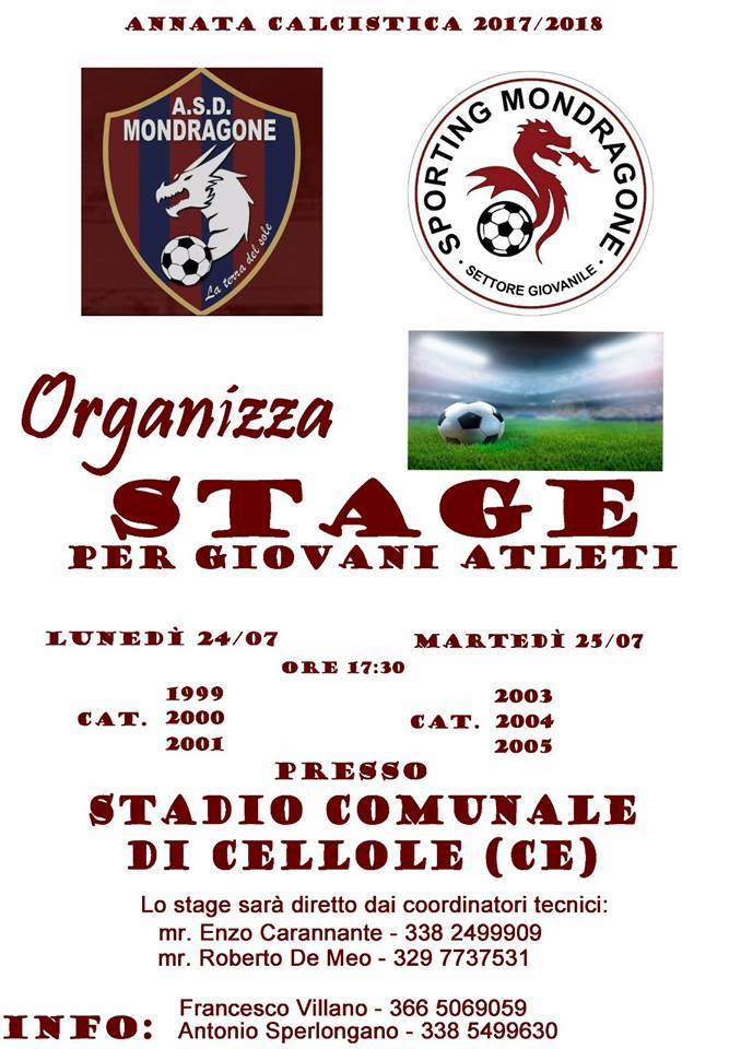 La società dell’Asd Mondragone è lieta di comunicare a tutti i siti ed organi d’informazione l’avvenuto ingaggio di cinque calciatori dopo la riconferma dell’attaccante Vittorio Improta. Eccoli nel dettaglio: Gianni Solano classe ’96 attaccante ex Sibilla Bacoli, Mariano Keller e Virtus Volla. Il calciatore può ricoprire più ruoli in attacco ed è esperto della categoria nonostante la giovane età. Stefano Iaccarino portiere classe ’87 ultima stagione tra le fila della Mariglianese, con esperienze con Portici, Sessana in Eccellenza, Puteolana Internapoli, Sibilla El Brazil e Sangiuseppese in serie D. Arriva un elemento dai piedi buoni pronto a dare tutto il suo contributo alla causa granata. Rosario Milone classe ’97 provenienza Ercolano serie D ruolo attaccante. Ha militato con l’Isola di Procida, Sibilla e Vollese in Eccellenza. Vincenzo Scherillo classe ’97 ultima stagione tra Pomigliano e Sersale in serie D ed in precedenza con Portici in Eccellenza. Arriva un difensore centrale di belle speranze. Danilo Sequino classe ’98 ruolo centrocampista ex Aversa Normanna in quarta serie e Sibilla Bacoli la scorsa stagione in Eccellenza. La scrivente società è lieta di comunicare la riconferma di Davide Migliore come preparatore dei portieri per la stagione agonistica 2017-2018. In settimana previsto l’annuncio di nuovi ingaggi. Si comunica che lunedì 24 Luglio alle ore 17:30 presso lo stadio Comunale di Cellole ci sarà un importante stage gestito dai tecnici Enzo Carannante e Roberto De Meo sotto la supervisione dell’esperto Bruno Di Lauro.