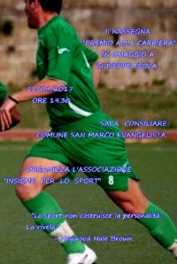 Tutto pronto per la seconda edizione del ‘Premio alla carriera in omaggio a Giuseppe Feola’. L’appuntamento è per lunedì 11 Settembre alle 19.30 nella Sala Consiliare del comune di San Marco Evangelista. Organizzata dall’Associazione ‘Insieme per lo sport’, la rassegna premierà sportivi e società che si sono maggiormente contraddistinte nella passata stagione. Ci saranno le telecamere di Sportcasertano che riprenderanno l’intera serata, le foto di tutti i premiati e la Casertana che invierà un rappresentante come ex società di Peppe Feola. Un appuntamento imperdibile per ricordare tutti insieme un ragazzo splendido che ci guarda da lassù.