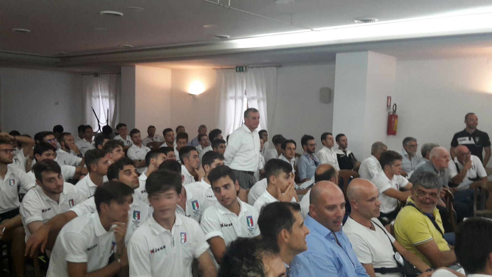 Dopo una breve pausa per la cena, i fischietti si sono diretti in aula dove il presidente Antonio Pietro Santangelo ha ufficialmente salutato i presenti ed ha tenuto un breve discorso. Domenica tutti i direttori di gara casertani, under ed over 19, calcio a 11 e futsal, si sono presentanti in tenuta sportiva per sostenere i test atletici (yoyotest e 40 metri per il calcio a 11, ariet e 30metri per il calcio a 5). La seduta per la verifica delle condizioni atletiche si è protratta per circa tre ore e alle 11 tutti in sala per la presentazione ufficiale degli ospiti. Ha presenziato il presidente della Figc Caserta, Gerardo Trombetta. Per il Cra Campania era presente l’avvocato Alberico Galluccio e per il settore tecnico nazionale Giovanni Pentangelo. Pentangelo, ex assistente in serie B, ha illustrato alla folta platea del calcio a 11 le importanti novità introdotte con la circolare numero uno. Una lezione intensa durata circa tre ore e che ha suscitato nei presenti molte curiosità e domande. Christian Magliulo ha diretto i lavori del gruppo del futsal organizzando una lezione per impartire le direttive della nuova stagione. I quiz sul regolamento hanno chiuso i lavori del raduno casertano. Soddisfatto si è detto il presidente Santangelo: “Ripartiamo dagli ottimi risultati dello scorso anno. Anche questa stagione inizia alla grande e con tanta voglia di fare bene. Investiamo nei giovani per costruire gli arbitri di domani.”