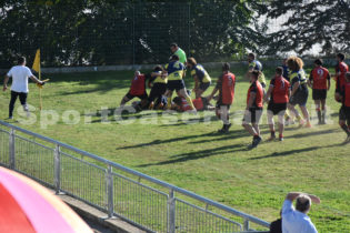 La gara inizia con una buona pressione del Clan ed un’ottima difesa dei Dragoni, che riescono spesso a spezzare il gioco e a raccogliere fischi in proprio favore. Al 12’ Maio si fa male e viene sostituito (blood replacement) da De Vizia, in seguito il numero 17 ospite sarà portato in ospedale per curare la ferita. La gara è maschia ed il caldo gioca brutti scherzi, così l’arbitro chiamerà due water break nel corso della match. Al 13’ Sabella porta in vantaggio i beneventani con una punizione calciata quasi da centrocampo (0-3). Il Clan si riorganizza e ci mette 5 minuti per andare in meta con Mario Cappiello, dopo una furbata di Alessandro De Luca, in uscita da una ruck. Alessio Cocchiaro, disturbato per la conversione, calcia male ma i padroni di casa si portano sul 5-3. Al 3’ è Iannotta in uscita da una maul a marcare la seconda meta per il Clan, la trasformazione di Cocchiaro non va ed il risultato passa sul 10-3. Quasi allo scadere del primo tempo Sabella tenta dalla linea dei 22 di sfruttare un calcio di punizione, ma l’ovale non c’entra i pali per poco. Si va al riposo sul 10-3.