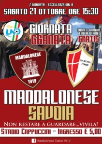 Grande sfida sabato pomeriggio alle 15.30 al ‘Cappuccini’ di Maddaloni tra la Maddalonese e il Savoia. Un match speciale che coinvolgerà centinaia di persone. Si preannuncia uno stadio stracolmo per l’arrivo della capolista del girone A di Eccellenza che porterà tantissimi tifosi al seguito. Per l’occasione la società ha indetto la ‘Giornata granata’ con ingresso unico di 5 euro e bambini fino a dieci anni e donne gratis. A questo punto toccherà al popolo maddalonese testimoniare tutto l’affetto nei confronti della squadra cittadina. I tifosi organizzati si stanno già mobilitando e il club sta già ricevendo richieste di acquisto per i tagliandi. Sarà insomma un sabato speciale con una gran bella cornice di pubblico.