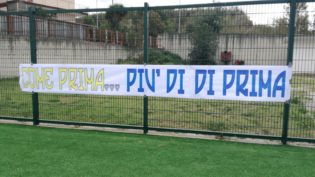Lo striscione dei tifosi della Sessana a sostegno della squadra