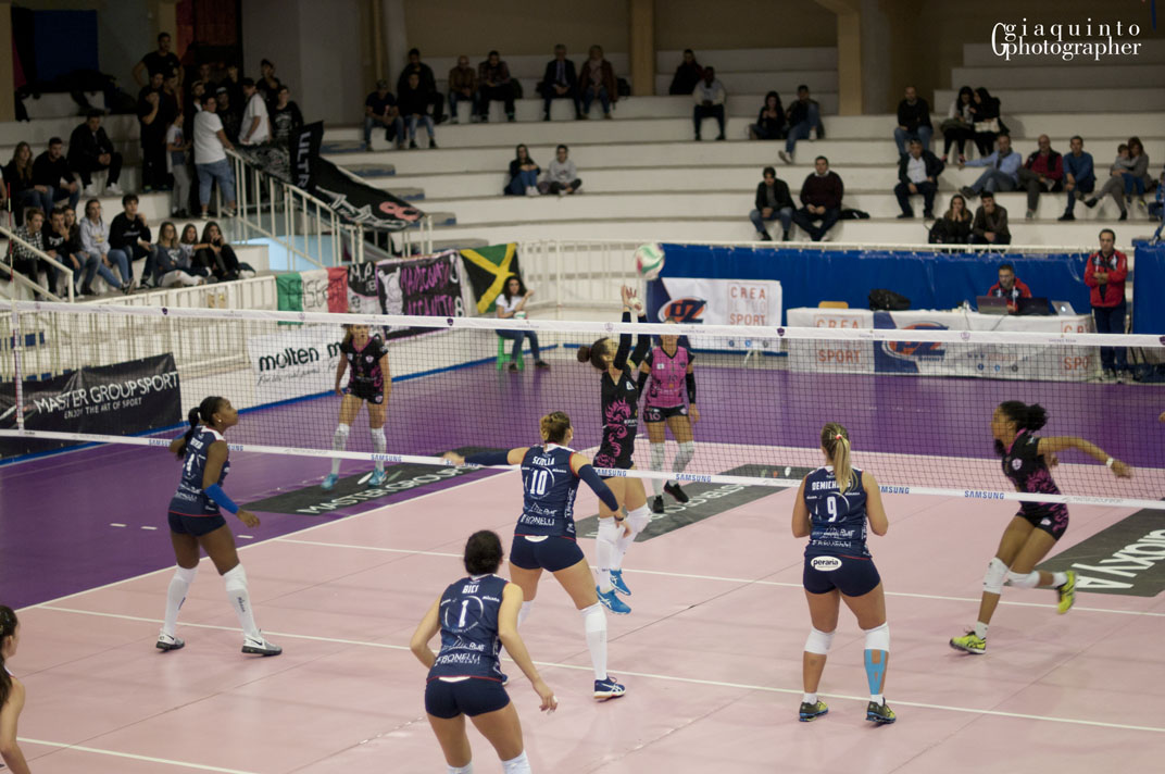 L’inizio del primo set vede entrambe le squadre viaggiare su importanti percentuali offensive. è tambureggiante, Trento punta molto sulla fisicità, compatta a muro e precisa in attacco. Sul 6-2 per le ospiti, la Golden ritorn ain scia delle rivai. Mortifere Lea Cvetnic e Karina Denysova  (5-7). Gli attacchi di Kiosi e le battute di Dekany però mettono in difficoltà le dragonesse, che chiamano il primo time out sul 5-10. Le rosanero mettono la quarta e con una grande Mabilo si avvicinano sul 10-12. Trento non è terza per caso. Le ospiti rimangono concentrate ed inizia un trend positivo, spezzato dall’attacco del duo Denysova-Moretti che riporta il punteggio in sostanziale equilibrio sul 16-17. La fisicità delle ospiti però emerge e cinica si porta sul 21-17, con coach Nesic che spezza il ritmo con il time out. L’imprecisione di Caserta in attacco agevola la squadra di Negro, che alza il ritmo e chiude il set a proprio favore sul 18-25.