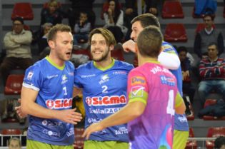 TERZO SET. I marchigiani riescono subito a conquistare un doppio vantaggio (5-3). Quando Larizza mura Simeonov le lunghezze di distacco tra le due squadre diventano tre (7-4). Quando il muro formato da Pinelli e Vigil non riesce a fermare l’attacco avversario la contesa arriva sul 9-5 e coach Bosco è costretto a chiamare il primo ‘discrezionale’. Al rientro in campo ci prova Giacobelli a suonare la carica con uno splendido muro (9-7) e la Sigma riesce a pareggiare i conti (10-10) quando Bisi spara out. Quando Sette attacco ancora una volta fuori la Sigma mette la testa avanti (11-12). E questa volta è coach Di Pinto a chiamare time-out. Ma si va punto a punto. E la GoldenPlast ha in Bisi un’arma micidiale: nuovo +2 dei padroni di casa (16-14). Quando Simeonov attacca una pipe a rete il terzo parziale arriva sul 18-15. Quando Potenza Picena conquista il ventesimo punto ne ha 4 di vantaggio da amministrare. Il muro normanno è sempre scomposto e ne approfitta Bisi (24-20). Ne basta uno: ace sempre dell’opposto su Simeonov e 25-20. Tre punti ai marchigiani, terzo ko di fila per la Sigma.