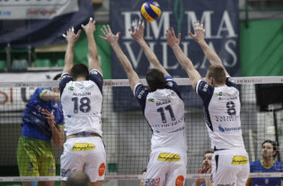 SECONDO SET. Nei primi dieci punti del secondo parziale Emma Villas Siena e Sigma Aversa sono ancora in parità. Il primo doppio vantaggio del set arriva quando Simeonov viene murato da Fabroni e il tabellone riporta il risultato di 9-7. Ma i normanni rimettono subito le cose a posto: Vigil trova il primo muro verdeblu ed è 9 pari. Vedovotto con un pallonetto non difeso da Aversa lancia il +3 toscano (13-10) e coach Bosco chiede un ‘discrezionale’. Al rientro in campo due punti di fila dell’Emma Villas e secondo time-out campano. Aversa non riesce a cambiare rotazione nonostante la ‘mossa’ di cambiare libero con dentro Marra e fuori Vacchiano. Sul 17-12 dentro Baldari e panchina per Libraro (il capitano accusa un piccolo dolore alla gamba). Fabroni trova l’ace (19-12 col pallone che tocca la rete e cade nella metà campo normanna) e quasi chiude il set. I ragazzi del presidente Di Meo non riescono a riprendersi: Siena vince anche il secondo parziale (25-15) dopo che Boswinkel toccando il muro aversano sigla il 24-14 che regala dieci set point.