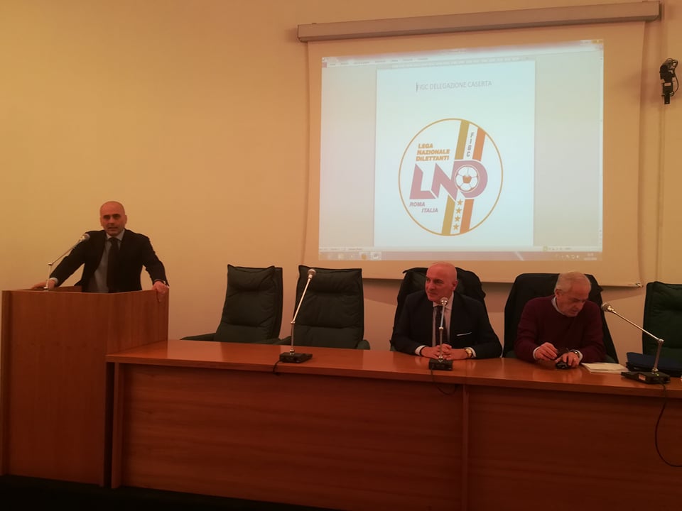 A fare gli onori di casa il delegato provinciale Gerardo Trombetta che ha salutato i presenti ed ha ricordato che da diversi anni mancava il corso nel comitato casertano, a conferma della nuova linea evolutiva che sta intraprendendo. Il suo discorso ha aperto il convegno presieduto da Xavier Jacobelli, rinomato giornalista dello sport italiano che attualmente ricopre il ruolo di direttore del CorrieredelloSport.it e Tuttosport.com e che è stato insignito di una targa ricordo. Insieme al coordinatore del corso per allenatori UEFA B Aldo Matano, Jacobelli ha parlato ai presenti di comunicazione sportiva, soffermandosi su tanti esempi.