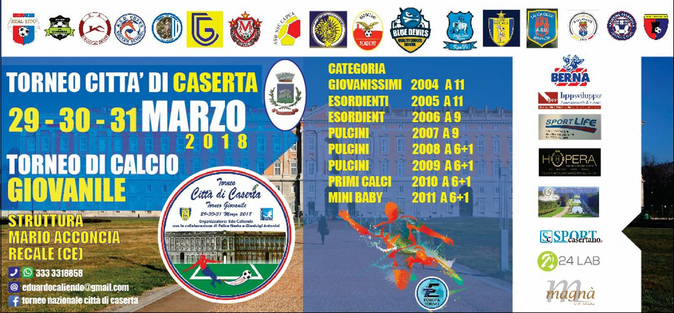 Tutto pronto a Recale presso il centro sportivo ‘Mario Acconcia’ per la quarta edizione del ‘Torneo Città di Caserta’. Diciassette club partecipanti che dal 29 marzo si sfideranno in una edizione particolarmente attesa. Organizzato da Eduardo Caliendo con la collaborazione di Gianluigi Antonini dell’Opes Caserta e Felice Nasta ds del Recale 2002. La kermesse è entrata per la prima volta nel circuito dei tornei giovanili europei. Importante il patrocinio del Comune di Recale e gli organizzatori hanno preparato tutto nei minimi dettagli. Questo l’elenco dei club partecipanti: Recale 2002, Dea Diana, Real Sito, Capua, Casapersella, Città di Giugliano, Sporting Casapulla, Balestrate (compagine sicula), Real Francolise, Alife, Blue Devils, Calatia Maddaloni, Foxes, Castel di Sasso, Maddaloni, Real Maddaloni, F.C. Giugliano. Parteciperanno le seguenti categorie: Giovannisimi (2004), Esordienti (2005), Esordienti (2006) a nove, Pulcini (2007) a nove, Pulcini (2008) a sei più uno, Pulcini (2009) a sei più uno, Primi calci (2010) a sei più uno, Mini baby (2011) a sei più uno. In programma oltre 120 gare per divertirsi e far divertire i giovani calciatori. La nostra testata sarà partner ufficiale del torneo.