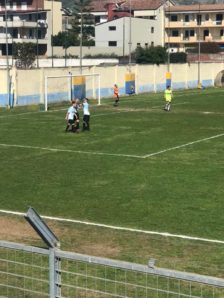 PRIMO TEMPO. Pronti via e il Marcianise parte all’arrembaggio, padrone del campo. Al sesto minuto gli ospiti vanno in vantaggio con Liccardi, bravo a insaccare dopo un’uscita a vuoto del portiere del Gladiator Ciontoli su un bel lancio di Aprile. Dopo quattro minuti, al decimo, calcio di rigore concesso al Marcianise. Va sul dischetto l’autore del goal Liccardi ma calcia non in maniera impeccabile facendo cosi’ riscattare Ciontoli dopo l’imprecisione di prima. Due minuti piu’ tardi ancora duello Liccardi-Ciontoli e ancora l’estremo difensore si oppone al bomber questa volta alla grande smanacciando un gran tiro del numero undici del Marcianise e deviando sulla traversa. Da questo momento in poi,inspiegabilmente il Marcianise fa poco e niente, come se pensasse di poter amministrare la partita. E infatti il primo tempo termina col risultato di uno a zero per gli ospiti.