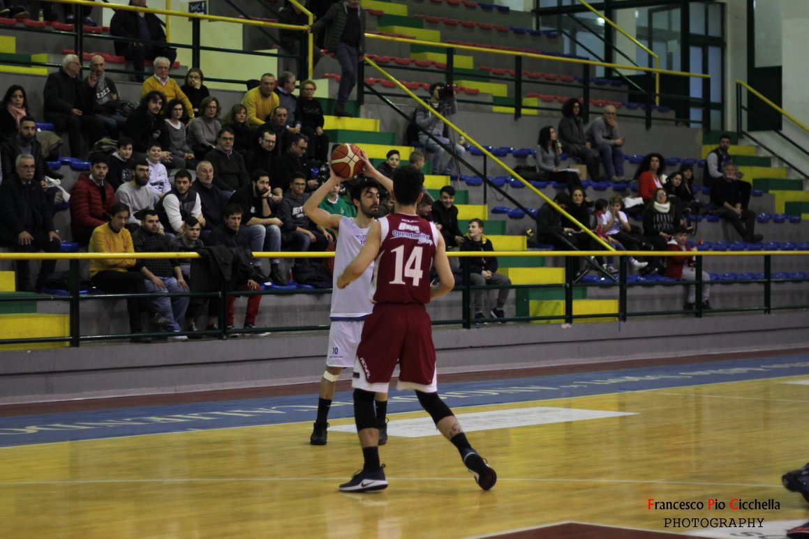 Dopo il minuto di silenzio per la famiglia De Filippo, nelle persone del presidente Andrea e del dirigente Pasquale per la scomparsa della mamma, è Angri che trova il primo canestro. Maddaloni risponde con un uno-due dall’arco dei 6,75 firmato da Requena e Rusciano. I padroni di casa allungano il parziale con Chiavazzo che taglia in due la difesa e appoggia al vetro (11-7 al 5′). I biancazzurri segnano ma soprattutto difendono. Con marcature asfissianti e continui cambi sui blocchi Angri trova pochi tiri puliti. Eppure con un break di 0-5 gli ospiti riescono a mettere il naso avanti, ma un canestro in transizione di Rusciano seguito dalla tripla di Moccia permette al San Michele di allungare sul +4 (18-14). I lunghi biancazzurri stazionano sul perimetro e avendo una mano calda non possono essere battezzati, così Moccia e Chiavazzo chiudono il primo quarto sfruttando lo spazio a centro area che deriva da questo accorgimento tattico per collezionare punti preziosi in penetrazione. Il secondo periodo si apre ancora con la coppia di esterni biancazzurra a fare pentole e coperchi, permettendo a Maddaloni di allungare sul 29-22 al 13′. Dopo aver giocato a ritmi sostenuti sin dalla palla a due, entrambe le squadre iniziano a tirare il fiato e a sbagliare più del dovuto. Soprattutto Maddaloni si disunisce in difesa e appare meno reattiva degli ospiti che muovono il punteggio con qualche rimbalzo offensivo di troppo. Angri passa in vantaggi due volte consecutive, ma in entrambe le occasioni ci pensa Rusciano, cecchino per una notte, a colpire da tre. Il pubblico del Pala Angioni-Caliendo si scalda, l’inerzia del match ritorna dalla parte dei biancazzurri mentre al resto ci pensano Moccia con un gioco da tre punti e Cioppa con un tiro pesante per il 43-37 con il quale si chiude il primo tempo.