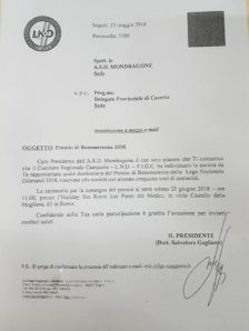 Il Mondragone e mister Carannante si salutano. Al club domizio il Premio di Benemerenza 2018
