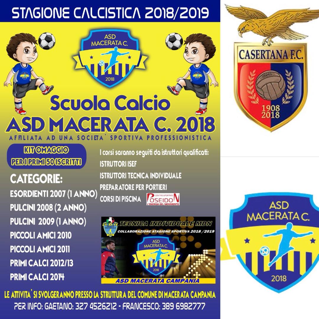 Il calcio casertano avrà una nuova squadra giovanile. Si tratta della ASD Macerata C. 2018. Un nuovo progetto sportivo dedicato ai bambini che amano il calcio e le sue innumerevoli sfaccettature.La A.S.D. Macerata C. 2018, infatti, nasce con lo scopo di far avvicinare i piccoli al mondo dello sport ed in particolare a quello del calcio, di fargli vivere una nuova esperienza con lo spirito del gioco, dell’aggregazione, del confronto e dell’amicizia senza far prevalere, come spesso accade, il senso della rivalità e della sfida.