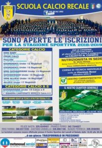 RECALE – L’A.S.D. Recale 2002 riapre i battenti. Oggi pomeriggio, martedì 28 agosto, inizia ufficialmente la stagione 2018-2019 per la scuola calcio, con i raduni delle categorie Allievi, Giovanissimi ed Esordienti. A partire dalle 16 tanti ragazzi si ritroveranno sul campo per il primo allenamento, in attesa che a breve si avvii anche l’attività di Pulcini, Primi Calci e Mini Baby. Quartier generale il centro sportivo “Mario Acconcia” di Recale, che dispone di un campo a 11, un campo di calcio a 8, tre campi di calcio a 5, una tendostruttura coperta di calcio a 5, il bar ed il parcheggio custodito.