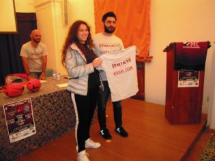 l responsabile marketing e tesoriere della società, nonché estremo/ala, Daniele Delle Femine, nel presentare le nuove maglie ha voluto ricordare lo sponsor tecnico Rage Sport come: “Un’azienda di Caserta, fondata dall’amico Maurizio Affuso, con il quale ci siamo trovati sulle tematiche da noi portate avanti come l’antirazzismo, ma anche con il concetto di crescita e di un modo alternativo di vedere lo sport. Tra l’altro anche gli sponsor hanno un ruolo importante nella nostra avventura e a loro va un caloroso ringraziamento”. Tra i presenti c’erano anche i rappresentanti dei partners dello Spartacus RSC tra cui Massimiliano Bovenzi per BM Costruzioni, Massimiliano Galasso per Vet Farm e Gian Marco Di Domenico per Tabula Cloud tutti omaggiati con la maglia ufficiale da gioco. Il consigliere della Federrugby campana, Gino Maio, invece ha omaggiato il sindaco Marotta con una cravatta della Federazione Italiana Rugby per “Aver compiuto una scelta lungimirante e coraggiosa nell’aver dato uno spazio importante al rugby, quando in Campania il numero di tesserati quest’anno non è dei migliori. Questo significa voler investire in uno sport che è vettore di valori sani”. Un presente è andato anche ai consiglieri Santucci e Motta, mentre Paolisso ha premiato la giovanissima Angela (12 anni) che dopo aver frequentato il campo estivo dello Spartacus si è innamorata a tal punto del rugby da organizzare in vacanza un torneo di rugby tra i villeggianti, così come anche uno dei suoi compagni di ‘corso’ Cristian. La foto di gruppo e i saluti finali hanno concluso la presentazione con l’invito di D’Addona a sostenere lo Spartacus già da domani pomeriggio contro il Battipaglia per la prima in casa. Ore 14,30 al campo dell’ex Ciapi.