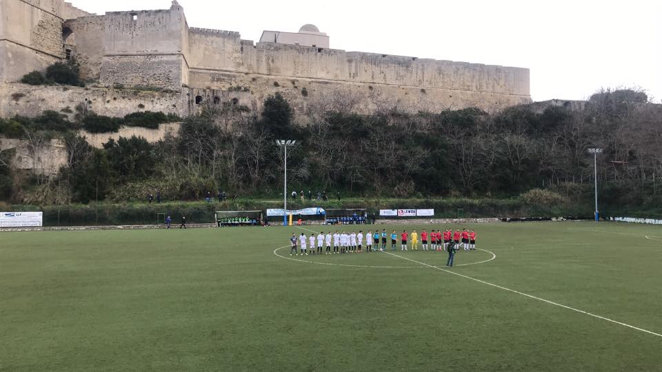 IL PRIMO TEMPO. Passando alla gara gli ospiti al 3’ trovano il gol del vantaggio con Fava, che con un destro a giro porta il risultato sullo 0-1. La Flegrea risponde subito allo svantaggio all’8′: i gialloazzurri conquistano un calcio d’angolo sulla battuta va Romano che pennella un cross perfetto, capitan Costagliola svetta di testa e il pallone va di poco fuori. Al 13’ altro angolo conquistato dalla Flegrea, stavolta sulla battuta va Moccia, ci prova Lucignano di testa e blocca Cioce. Al 27’ tenta la giocata vincente da fuori area Romano, ma il pallone va di poco alto. E’ un autentico assalto della Flegrea che cerca il gol del pareggio. Al 33′ bella palla gol sui piedi di Pastore, con il pallone che di poco non entra, la porta di Cioce sembra davvero incantata. Al 37’ ci prova Moccia da fuori area e il tiro si schianta sul palo basso a destra dell’estremo difensore granata. Un’altra occasionissima. Al 44’ punizione conquistata dalla Flegrea, sulla linea centrale dell’area, va sulla battuta Moccia e respinge di testa Baratto, che salva la sua porta da un tiro che sembrava già in rete. Un minuto dopo al 45’, è ancora Moccia che cerca il gol del pareggio ma viene bloccato da Cioce. Il primo tempo si chiude con il vantaggio ospite.