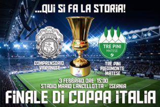 ISERNIA – Grande attesa per la finale “tutta casertana”. Oggi pomeriggio alle 15, allo stadio “Mario Lancellotta” di Isernia si disputerà la super sfida di Coppa Italia Molise tra Tre Pini di Piedimonte Matese e Comprensorio Vairano. Due compagini di Terra di Lavoro in finale contemporaneamente non si erano mai viste, ed in più sarà un record vedere la prima vincitrice campana. Grande l’entusiasmo dei tifosi, con una prevendita che è andata a gonfie vele sia a Piedimonte Matese che a Vairano Patenora.