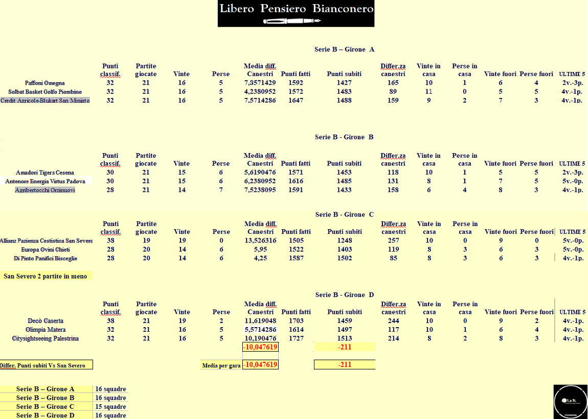 Libero pensiero Bianconero, prosegue nel SUO ‘giochino’® in ottica post season. Proviamo a fare, adesso, un confronto statistico sulle prime tre squadre per ogni girone.