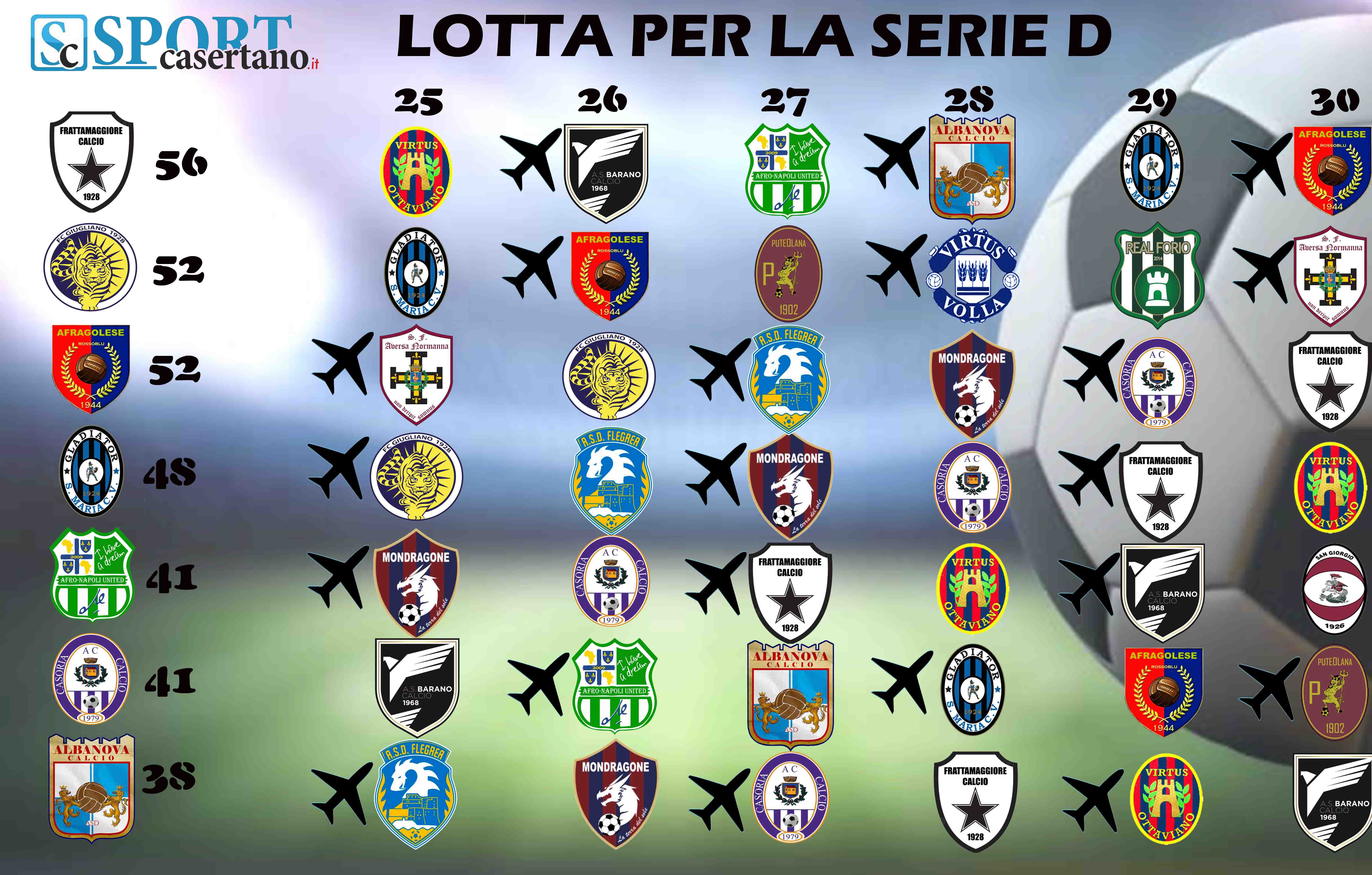 Ultima posizione utile per i play-off per la neo-promossa Afro Napoli insieme al Casoria, la squadra di mister Ambrosino apre il tour de force con la trasferta contro il Mondragone, scontro diretto a Mugnano contro il Casoria nella ventiseiesima giornata per la miglior posizione possibile. La trasferta allo “Ianniello” di Frattamaggiore rappresenterà una gara fondamentale per il crocevia della stagione, nelle ultime tre partite l’Afro Napoli, con le sfide interne con Virtus Ottaviano e San Giorgio intervallate dalla trasferta a Barano, potrebbe scalare la classifica per il miglior posto nei play-off.