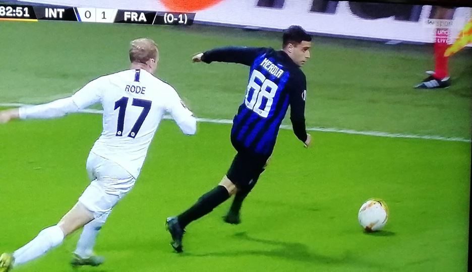 MILANO – Debutto ufficiale per Davide Merola in Europa League. Pochi istanti fa il baby prodigio classe 2000 di Santa Maria Capua Vetere ha fatto il proprio ingresso in campo al posto di Matteo Politano, con la maglia numero 68 allo stadio “Beppe Meazza” di Milano. Luciano Spalletti lo ha gettato nella mischia al 80’ per dare una mano all’Inter, alle prese nella difficile missione di conquistare la qualificazione ai quarti di finale della competizione europea. L’Eintracht Francoforte vince 0-1 e serve un miracolo per passare il turno. Un grande momento per l’attaccante cresciuto nella SSC Capua e nella Juve Sammaritana, che aspettava da tempo e che sfrutterà nel migliore dei modi.