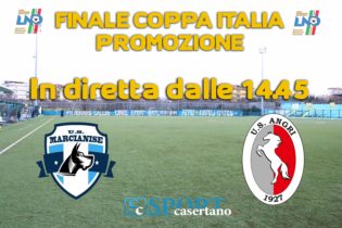 Grande appuntamento oggi pomeriggio al ‘Vallefuoco’ di Mugnano per la finalissima di Promozione tra il Marcianise e l’Angri. Gara attesa da entrambe le tifoserie che si ritroveranno a distanza di 14 anni. Come in occasione di Giugliano-Cervinara giocata a Caserta, sportcasertano vi offrirà in diretta il match che assegna la coppa regionale. Ottenuto il nulla osta dal Comitato Regionale Campano, a partire dalle 14.45 vi offriremo le immagini dell’incontro sulla nostra pagina facebook. Telecronaca affidata al duo Vastante-Librace con interviste di Monia Monti e regia affidata ad Armando Serpe. Vi offriremo comodamente sul vostro smartphone, pc o tablet l’atto finale di una Coppa ambita da entrambi i club.