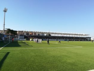 IL PRIMO TEMPO. La tensione si fa subito sentire e dopo appena cinque minuti il direttore di gara è costretto ad ammonire i due capitani Costanzo e Di Pietro per un diverbio. Il Gladiator si affida soprattutto alla classe dei due esterni per scardinare la difesa avversaria, Di Pietro e Scielzo. Proprio quest’ultimo va al tiro al 9’ ma l’ex Fontanarosa mura la conclusione. La risposta dei padroni di casa arriva al 18’ quando sulla punizione di Costanzo, Simonetti prolunga di testa e De Lucia blocca a terra. I neroazzurri prendono coraggio ed al 24’ sfiorano il vantaggio: imbeccato sulla destra, Antonio Di Paola crossa al centro, la palla viene deviata, sbatte sulla traversa e torna in campo, sulla ribattuta la conclusione di Liccardi viene murata da Ciampi. Un minuto dopo il tecnico della compagine napoletana Ciaramella protesta vivacemente e viene allontanato. La reazione dei nerostellati arriva al 28’ con Grezio che si fa spazio da fuori area e calcia ma la sua conclusione termina a lato. La pressione della Frattese diventa imponente ed al 33’ la squadra manca una doppia occasione: Costanzo calcia una punizione dal limite dell’area ma il portiere neroazzurro De Lucia è attento a smanacciare, sull’angolo seguente, Sparano calcia ma non inquadra lo specchio della porta, è il preludio al gol. Passano appena sette minuti e la Frattese si porta in vantaggio. Lancio perfetto a scavalcare la difesa di Costanzo che pesca Sparano, il giocatore calcia al volo e con una parabola imprendibile batte De Lucia e sigla il gol dell’1-0. Ottima la coordinazione di Sparano che con il suo gol chiude la prima frazione di gioco.