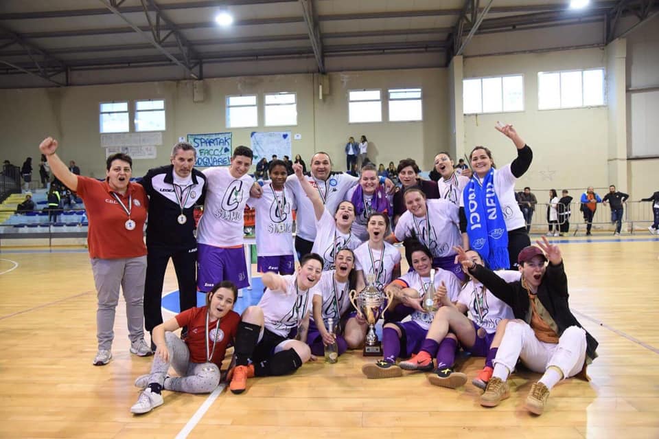 CASERTA – Quindici giorni di sorrisi ed obiettivi raggiunti per lo Spartak San Nicola C5 femminile. Le ragazze blù-verdi in due settimane hanno messo a segno un double da sogno, prima la vittoria del campionato conquistando la C1 e successivamente impadronendosi della Coppa Campania Femminile di C2 battendo con un risultato di 3-2 il Futsal Koine. Le sannicolesi con un vantaggio di due punti in classifica sul Koine hanno disputato l’ultima partita di campionato da cardiopalma che è stata proprio Spartak San Nicola- Futsal Koine e con un risultato di 2-1 portano a casa la promozione in C1. Il double delle blù-verdi viene messo a segno domenica 14 Aprile. Nuovamente contro il Koine le ragazze mettono le mani sulla coppa con un combattuto 3-2. Il tango a due Spartak-Koine di certo non ha fatto mancare le emozioni in questo campionato, le prime hanno collezionato su 20 gare disputate, 19 vittorie ed 1 solo pareggio. Sono 20 le reti subite e 143 quelle segnate una media di 7, 15 gol fatti a partita. Il cammino dello Spartak è stato meraviglioso ed ha avuto il migliore degli epiloghi: promozione in C1 e Campionato e Coppa soffiati al Koine, le sannicolesi si proclamano la bestia nera di quest’ultimo. Gli applausi vanno però anche alle ragazze del Koine, bel campionato disputato anche da loro. 17 vittorie, 2 pareggi ed una sconfitta con 122 gol fatti e 32 subiti. Lo Spartak ora si rilassa e si prepara per il campionato di C1 del prossimo anno ed il Koine combatterà per raggiungere i propri obiettivi, magari salendo in C1 e dando vita nuovamente al testa e testa che ha tanto emozionato tutti: Spartak-Koine.