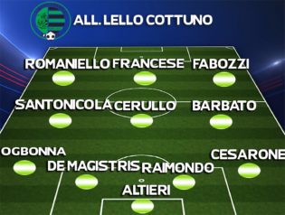 SPONDA HERMES CASAGIOVE. Modulo diverso per Gianluca Sena che probabilmente schiererà un più coperto 4-4-2. Perna e Melucci spingeranno sulle fasce, mentre a centrocampo gli esperti Filagrossi e Longobardi agiranno insieme a Setale ed al giovane D’Alterio. In avanti i giallorossi si affidano al duo Autieri – De Matteo con quest’ultimo che già durante la stagione ha spesso cacciato dal cilindro giocate decisive. Non ci saranno per squalifica capitan Varese e Macciocchi.