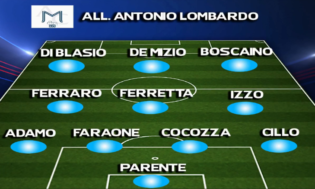 SPONDA MONTESARCHIO. L’allenatore dei sanniti Antonio Lombardo dovrebbe schierare i suoi con un probabile 4-3-3 con Parente tra i pali, Cillo e Adamo terzini e i due centrali Cocozza e Faraone. A centrocampo Ferretta regista supportato dalle due mezzale Ferraro e Izzo, mentre in avanti il tridente Boscaino – Di Blasio – De Mizio, con quest’ultimo punta centrale.