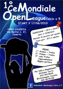 Il 1° Ce Mondiale Open League di calcio a 5 più grande e innovativo della provincia di Caserta, è pronto per cominciare! Divertimento, educazione e fair play per un torneo che punta a dare emozioni forti in un’estate senza i propri beniamini. Il torneo sarà equilibrato e alla portata di tutti. Le squadre prenderanno il nome delle nazionali e saranno divise per gironi all’italiana da 4 proprio come avviene nelle più grandi competizioni internazionali. La formula del torneo prevede una prima fase a gironi, ed una successiva fase ad eliminazione diretta fino alla finale, in perfetto stile Mondiale.