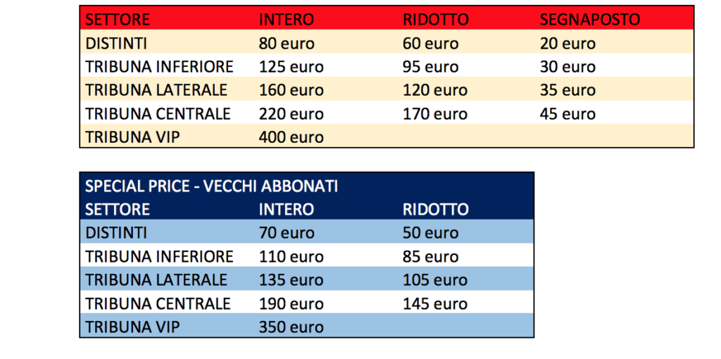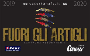 FUORI GLI ARTIGLI. Più che uno slogan, un vero e proprio grido di battaglia che accompagnerà la campagna abbonamenti della Casertana FC in vista della stagione 2019/20. Grinta, fame e voglia di rivalsa. Sentimenti, sintetizzati nel graffio del falco, che animano la nuova ripartenza. E proprio dal legame con i propri tifosi che la nuova annata è pronta a partire. Da giovedì 8 agosto, unicamente presso il CASERTANA STORE di Corso Trieste, sarà possibile sottoscrivere gli abbonamenti per la stagione 2019/20. Prezzi popolari, con nette riduzioni rispetto alla scorsa stagione (es. i Distinti passano dai 135 euro della stagione 2018/19 agli 80 euro della nuova campagna abbonamenti). A questo si aggiunge un ulteriore riconoscimento riservato alla fedeltà dei vecchi abbonati. Con la promozione SPECIAL PRICE i possessori di tessera della stagione 2018/19 potranno acquistare il nuovo abbonamento con un prezzo pari a circa la metà rispetto alla scorsa annata. Per gli UNDER 12 e OVER 80 confermata la soluzione SEGNAPOSTO, per poter assicurare il punto di vista desiderato per l’intera stagione. Il SEGNAPOSTO UNDER 12 può essere acquistato contestualmente alla sottoscrizione di una tessera di abbonamento, o anche in un secondo momento (ma entro la chiusura della campagna abbonamenti e mostrando la tessera 2019/20) unicamente da uno dei due genitori munito di stato di famiglia all’atto dell’acquisto.
