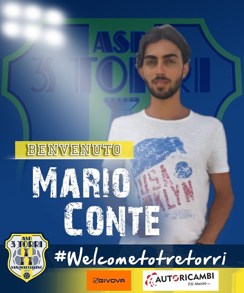 È Mario Conte il Primo elemento su cui potrà contare Mister Cantile per il prossimo Campionato di 3^ Categoria. Classe ’98, Mario è un Attaccante moderno in grado di poter giocare in più moduli,dovrà essere bravo il neo tecnico gialloblu a trovare la soluzione giusta al ragazzo originario di San Marcellino. Prima della Tre Torri,Mario ha avuto esperienze a San Marcellino da piccolo, poi con Casale e Liburia,in entrambi i casi trattasi di categorie Juniores. Benvenuto Mario