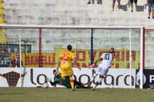 Casertana che pressa a testa bassa gli uomini di Auteri, al 24’ ancora cross da destra, Martinelli in tuffo manda in angolo con due rossoblù pronti a ribadire in rete.