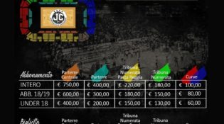 tribuna numerata € 180,00, ridotto under 18 € 130