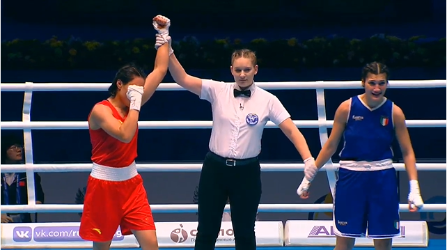 Finisce con un meraviglioso argento l’avventura iridata di Angela Carini ai Mondiali AIBA femminili di Ulan Ude (Russia). La cinese Dan Dou batte Angela Carini, con un verdetto di 5-0 da parte dei giudici (30-27, 29-28, 29-28, 29-28, 29-28), nemmeno troppo netto e forse con qualcosina in più da concedere alla pugile nativa di Afragola e cresciuta a Piedimonte Matese visto anche l’ultimo round. Una muraglia con delle crepe, ma comunque ed obiettivamente difficile da scalare e con una boxe potente e spigolosa al tempo stesso. Un ottimo cammino per ‘Tiger’ che ha preferito gareggiare nei 64 kg, 5 kg sotto la sua categoria di peso solita. Colpi più potenti e lunghe leve che sono entrate nella guardia un po’ larga della Carini qualche volta in più da parte della Dan Dou, che tra l’altro è la pugile più rappresentativa della categoria. Ma niente di così netto, anzi, poteva finire anche con verdetto diverso.