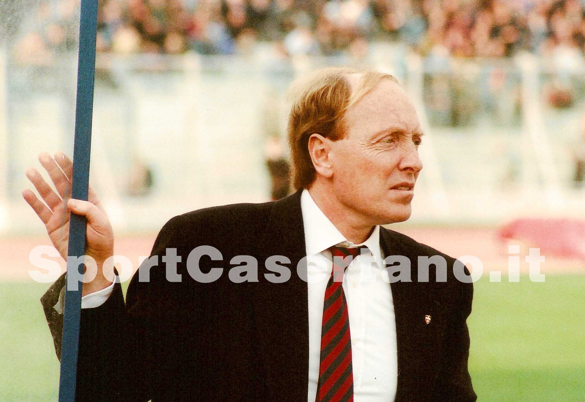 Casertana-Avellino torna dopo ventisette lunghi anni e le due formazioni sono accomunate dal ricordo di un grande allenatore Adriano Lombardi. Bandiera biancoverde negli anni settanta, portò la Casertana in B nel ’91 con una grande rimonta. Scomparso dodici anni fa per sclerosi laterale amiotrofica, è rimasto nei cuori della gente e di due città che non lo dimenticheranno. Arrivò a campionato in corso nel 1991 sostituendo Mario Russo i cui risultati non davano i frutti sperati. “Le cose non andavano bene in quel periodo con Russo e decidemmo di cambiare. Grillo mi suggerì di prendere Adriano Lombardi che io non conoscevo bene. Non arrivava da stagioni esaltanti ma quando ci parlai mi colpì subito. Prevalse l’istinto e mi fece subito una buona impressione. Sapeva che Caserta era una piazza esigente pronta per il salto in B. Mi capì e trovammo subito l’accordo, fu la scelta e l’uomo giusto per quella Casertana”. Fu una grande cavalcata iniziata però solo nel girone di ritorno: “Voleva applicare e poi applicò un gioco avveniristico, non speculativo. Era un po’ ostaggio della vecchia guardia, dei calciatori più esperti e dopo la sconfitta di Monopoli cambiò qualcosa. Chiese l’aiuto di tutti, società compresa e inserì stabilmente i vari Statuto, Bucci e Petruzzi. Ripartimmo e da quel momento non ci fermammo più”. Un tecnico carismatico che sapeva interloquire perfettamente con tutti: “Adriano era una persona eccezionale, un autentico signore. Non il classico pallonaro che si vedono nel mondo del calcio ma una persona a modo, gentile, di grandi principi. Lo definisco un candido perché era davvero un uomo perbene”.