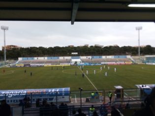 IL PRIMO TEMPO. Dopo i primi minuti caratterizzati dal consueto studio per entrambe le compagini, al 10’ i neroazzurri si affacciano per la prima volta in avanti, Sorrentino calcia una punizione dalla trequarti per la testa di Del Sorbo che però non imprime grande forza e stacca debolmente tra le braccia di Volzone. La risposta dei padroni di casa è imminente e al 16’ c’è bisogno di un doppio provvidenziale intervento da parte di Sall che anticipa gli avversari pronti a concludere. La prima parata del nuovo portiere neroazzurro Fusco arriva al 21’ quando con i pugni è pronto a sventare una conclusione molto forte di Yeboah. Poco dopo la mezz’ora sono ancora i padroni di casa a rendersi pericolosi con Nannola che entra in area, vince un rimpallo ed in scivolata va al tiro che fa la barba al palo ed esce di pochissimo. Pochi minuti dopo Credendino deve effettuare il primo cambio della sua partita mandando in campo Di Paola per Del Sorbo, fuori causa per un fastidio muscolare. In chiusura di tempo, l’ultima emozione la regala una grande giocata di Sall che parte dalla propria metà capo, salta tre avversari, arriva sul fondo e pesca in mezzo Sorrentino che non coglie l’attimo buono per calciare e si lascia chiudere dalla difesa locale. Termina a reti bianche un primo tempo equilibrato.