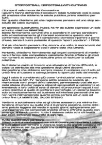 “Stop football, no without fans” è il titolo del documento e che in sole cinque parole racchiude un ideale esistente da quando è nato lo sport: senza pubblico il calcio non è calcio.