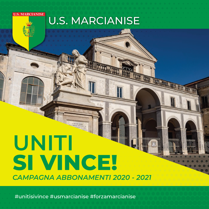 MARCIANISE – L’U.S. Marcianise promuove la campagna abbonamenti “Uniti Si Vince” per la stagione 2020/2021 (hashtag di riferimento: #unitisivince). Nell’ottica di compattare dirigenza, squadra e tifosi, la società del presidente Giuseppe Iannotta intende creare un’unione di intenti che possa spingere i colori gialloverdi a svolgere un grandissimo campionato e lottare per un futuro ritorno nei palcoscenici che ha calcato nella propria storia.