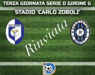 L’ASD Gladiator 1924, comunica che l’incontro di calcio Carbonia – Gladiator, valevole per la 3° giornata del girone G di serie D in programma il giorno 11/10/2020, è stata rinviata a mercoledì 21 ottobre, a causa della positività al Covid-19 di un tesserato nerazzurro.