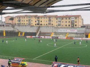 SECONDO TEMPO. Il Savoia ritorna in campo agguerrito e spaventa i neroazzurri con il tiro di Kyeremateng che viene deviato in angolo da Sall (47′). Dall’altra parte, su cross di Landolfo, colpo di testa di Del Sorbo che è troppo lontano per impensierire Esposito (48′). La partita resta soporifera, con le due compagini che per oltre sessanta minuti combattono senza però aver mai concluso nello specchio della porta in maniera insistente. Al 60′ Aronica inserisce il casertano di Casal di Principe Scalzone ad irrobustire l’attacco insieme a Kyeremateng ed Orlando. Sale la pressione degli oplontini che costruiscono il primo grosso pericolo al 66′. Angolo dalla sinistra, Manzo colpisce il palo, la palla ritorna in campo e De Rosa cerca la ribattuta che Fusco neutralizza giusto in tempo sulla linea. Sembra possa essere l’inizio del forcing, invece è solo una fiammata dei biancoscudati che dipendono troppo da Kyeremateng sotto porta: sono sei su undici i goal dell’attaccante di origine ghanese. Pregevole il doppio gesto balistico di D’Ancora al 75′: doppio sombrero ma poi la rifinitura per i suoi compagni di reparto è errata e sfuma una ghiotta chance. Rifiatano i sammaritani con il cross di Di Finizio per Coppola: Esposito blocca centralmente (80′). Provvidenziale all’88’ Di Finizio che viene affrontato da Kyeremateng: doppio passo ma l’esterno neroazzurro gli nega il dribbling ed una occasione limpida (88′). Sul capovolgimento di fronte il baby Suppa è caparbio, ci crede e recupera una palla al limite: palla per Del Sorbo che calcia centralmente (89′). Nel finale le occasioni più importanti capitano a D’Ancora: prima il colpo di testa viene parato da Fusco (91′), poi in area il suo tiro termina altissimo (94′), salvando i neroazzurri.