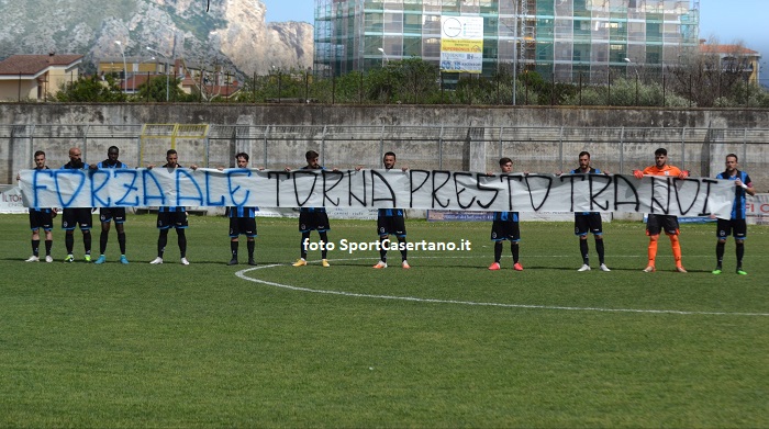 SANTA MARIA CAPUA VETERE – Il Gladiator rincuora Alessandro Falco. All’ingresso in campo della partita di recupero contro il Muravera, i calciatori neroazzurri hanno esposto lo striscione che recita: “Forza Ale, torna presto tra noi“. Un bel modo per rincuorare il calciatore che si sottoporrà nelle prossime ore ad un intervento chirurgico alla rotula del ginocchio, dopo quello già effettuato al femore nei giorni scorsi, in virtù di un incidente stradale in cui è stato coinvolto lunedì. Stagione finita per l’ex Avellino e Messina, il Gladiator è vicino a lui ed esprime il proprio sostegno al ragazzo con un gesto di enorme sensibilità.