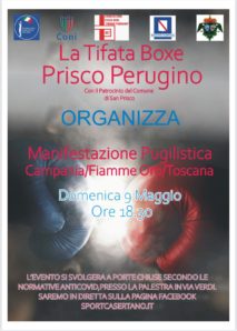 La palestra dell’ex scuola elementare di via Verdi di San Prisco sarà, ancora una volta, la cornice per una riunione pugilistica organizzata dalla Tifata Boxe ‘Prisco Perugino’. Questa volta oltra a pugili locali e campani ci saranno anche due atleti toscani. Saranno 13 gli incontri in programma con 5 pugili della Tifata del maestro Giuseppe Perugino e 5 allenati dal nipote Giuseppe per le Fiamme Oro Caserta, assieme a Biffone e Marzia Davide. Prima campanella alle ore 18,30, con l’evento sponsorizzato dalla Papale Petroli che potrete seguire in diretta sul nostro portale sulle pagine Facebook di SportCasertano.it ed All Stream e sul canale Youtube Sportcasertano Tv.