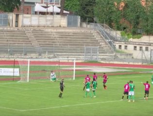 IL PRIMO TEMPO – Ottima trama del Matese al ‘5 lancio lunghissimo per Adusa che brucia sul tempo Strano e dopo una progressione impressionante mette al centro, la sfera viene deviata ed arriva sui piedi di Barone che da fuori calcia di piatto alto. Due minuti dopo i lupi la sbloccano: rimessa laterale di Masi, palla alta per la testa di Abreu che anticipa Governali, Galesio si avventa sul rimbalzo e in spaccata sigla lo 0-1, decimo centro per il Tanque che si fa trovare pronto sulla sponda di testa di Abreu e Matese in vantaggio. I ritmi sono bassi e gli ospiti controllano le avanzate del Tolentino che si sveglia nell’ultimo quarto d’ora. 31′ Ruci mette al centro Padovani è pronto per colpire di testa e segnare ma Kuzmanovic anticipa l’attaccante e salva il Matese. 35′ Padovani in progressione serve Ruci che dal limite scocca un destro che termina di poco alto. Sulla rimessa in gioco Cassese sbaglia il disimpegno, Padovani raccoglie, mette in mezzo per Minella che calcia strozzando il tiro Kuzmanovic para in due tempi. 39′ ancora Ruci dalla distanza, Albanese devia in angolo, sul corner stacca Strano e Galesio salva quasi sulla linea. Al 42’ episodio dubbio, Capezzani calcia una punizione dal limite dell’area decentrato sulla sinistra, il calciatore mira all’incrocio e Kuzmanovic compie un vero e proprio miracolo opponendosi con un colpo di reni strepitoso, proteste dei calciatori cremisi che sostenevano che la palla fosse entrata ma l’arbitro fa segno che la sfera non ha superato la linea e lascia correre. Ancora i padroni di casa, corner di Capezzani per la testa di Labriola che colpisce a botta sicura ma è ancora Galesio a salvare i suoi sbaragliando la contesa, Ruci arriva col destro ma manda fuori.