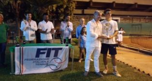 In campo due ‘veterani’, per così dire, della racchetta e molto conosciuti in zona: Luigi Santonastaso (3/2) e Gianluca Rianna (3/3) del Tennis Club Capua contro Mario Pariota del GTS (3/1) e Matteo Totaro del Team Boscatto di Napoli (3/3). Anche qui partenza sprint del duo capuano che nonostante i game molto tirati riesce sempre a metterci qualcosa in più nel secondo set e si impone per 6-1. Nel secondo set la musica cambia e solo un break fa riportare il naso avanti a Santonastaso e Rianna che si impone con grinta 7-5. Alla fine le due coppie stremate da giorni di gare al caldo torrido di questo periodo si complimentano sportivamente tra gli applausi dei numerosi presenti. Intanto, nell’attesa dell’arrivo di Massimo Del Carmine, impegnato in un’altra gara nel primo pomeriggio, con conseguente slittamento della finale Maschile si sono svolte le altre premiazioni con il ringraziamento del GTS e del suo direttivo a Franco Di Rienzo, socio del club, ma anche sponsor della manifestazione con la sua Costruzioni Di Rienzo.