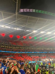 A WEMBLEY. Amedeo Ettougani ha saputo delle scene avvenute fuori lo stadio, con il servizio d’ordine che non ha funzionato bene, in virtù probabilmente del numero limitato di personale. Anche nel loro settore sono entrati all’intervallo degli scalmanati d’Oltremanica ma il tutto è durato quindici minuti, grazie all’intervento degli steward: “Abbiamo sentito di vari episodi ma noi abbiamo effettuato un percorso diverso, scortati sia all’andata che al ritorno tra aeroporto, stadio ed aeroporto. E’ un’esperienza indimenticabile che non potrò mai dimenticare, stupenda”. Vivere una partita del genere a Wembley è ancora più bello come confida Luca Russo: “Wembley ha il suo fascino. Qui la Sampdoria ha perso una finale di Champions League oltre vent’anni fa, vincere a casa della Regina Elisabetta non è mai semplice. Allo stadio con gli altri tifosi abbiamo fatto tanti dibattiti politici sulla Brexit, sull’Inghilterra e sull’addio all’Unione Europea. In questi anni gli inglesi sono tornati forti anche nelle competizioni europee per club ma ieri abbiamo dimostrato di essere più forti. Siamo orgogliosi dei nostri Azzurri”.