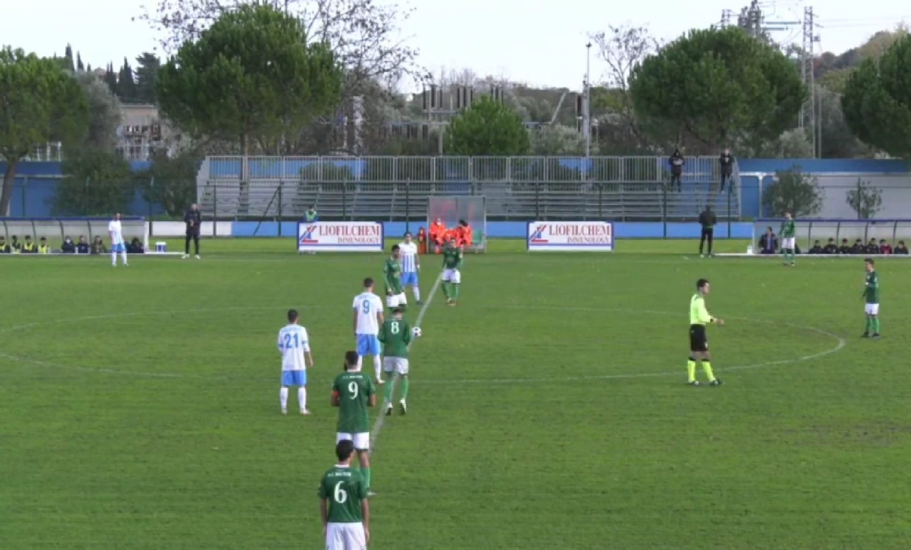 PRIMO TEMPO. I ritmi nono sono altissimi ma la sfida è gradevole. Al 10′ cross del figlio d’arte Almeida per Iannetta che solo davanti a Mercorelli viene anticipato con un grande intervento di Mesisca che in diagonale chiude ed evita il peggio. Al 12′ risponde Ciarcelluti con un tiro-cross pericoloso ma Del Giudice con i pugni respinge e spazza. Al quarto d’ora il Pineto va vicino all’1-0, Della Quercia trova un corridoio per Barlafante che mette al centro per Cardella che vede la corrente Paoli che sbaglia un rigore in movimento e spara in bocca a Del Giudice da ottima posizione. Almeida si intende bene con El Ouazni che al 23′ riceve dal compagno di reparto e va a giro dalla distanza senza però prendere lo specchio di porta. Due minuti dopo Ciarcelluti se ne va in contropiede, Barlafante mette al centro un cross alto ma teso per Cardella che viene ottimamente anticipato da Andreassi che sbroglia la minaccia. 36′ Almeida si mette in proprio dai venticinque metri ma la palla esce sul fondo.