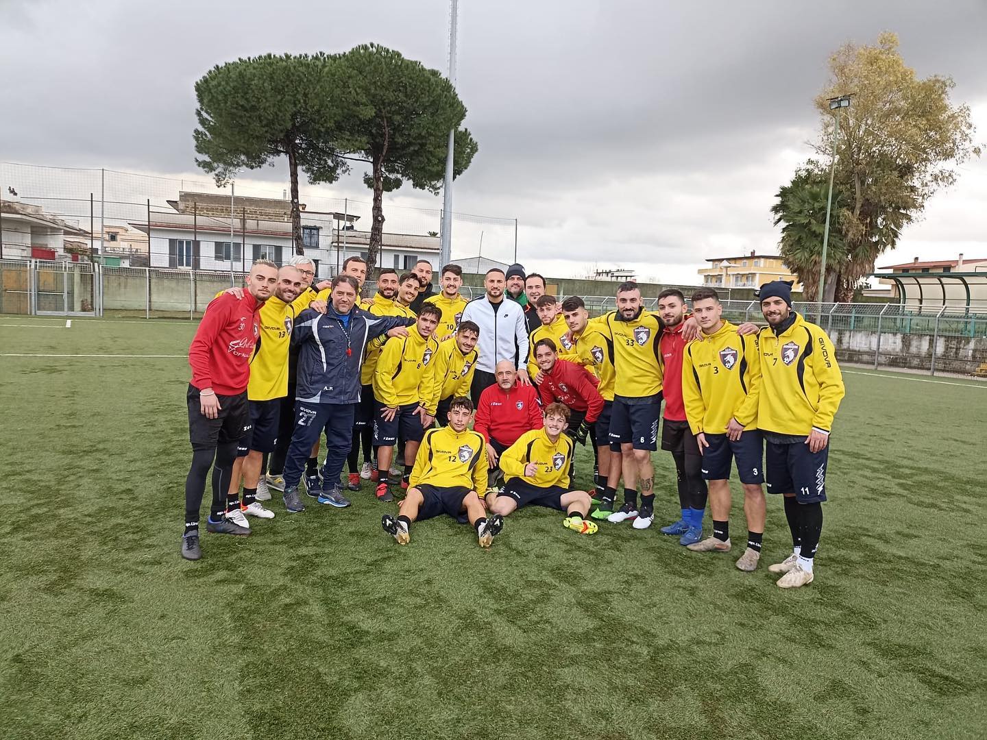 MONDRAGONE – Le visite, durante il periodo natalizio, fanno sempre piacere, e sono ancora più gradite se sono inaspettate e fatte da un campione. Alla ripresa degli allenamenti di ieri, il Mondragone di mister Aldo Papa si è ritrovato allo stadio “Papa” di Cardito dopo la pausa natalizia. Allo stadio però, non c’era solo la squadra ma anche un graditissimo ospite. Si tratta di Danilo D’Ambrosio, terzino dell’Inter e della Nazionale passato all’allenamento per salutare il tecnico Papa e per fare i migliori auguri alla squadra in vista del girone di ritorno.